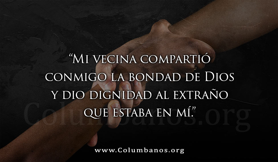 Hay un buen número de personas que, por sus obras, palabras y por el simple hecho de ser, han dado voz a los que no tienen ninguna, especialmente a los pobres, a los que están marginados y a la creación misma, y se han convertido en inspiraciones para los necesitados. Han dado esperanza a los pueblos y a las naciones y han inspirado a muchos a seguir compartiendo el amor y la bondad de Dios trabajando por la justicia, la paz, la dignidad de la vida y la integridad de la creación. Mi vecina compartió conmigo la bondad de Dios y dio dignidad al extraño que estaba en mí.