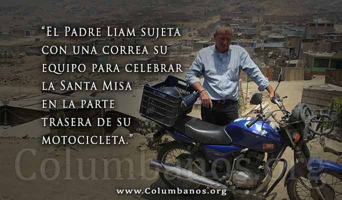 Así que cuando los habitantes de Jicamarca escuchan un motor de motocicleta y ven una estela de polvo en el aire, saben que es el Padre Liam que montado en su motocicleta se dirige apresuradamente a oficiar la Santa Misa en otra parte de esta región empobrecida.