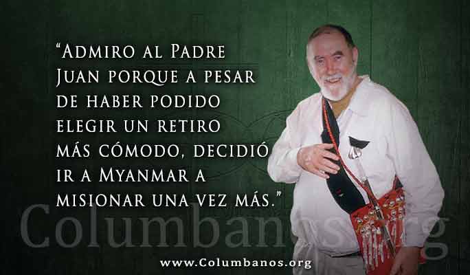 A los 68 años de edad, el Padre Juan viajó a Myitkyina sin saber a ciencia cierta qué le esperaba; sólo le previnieron de la temporada de monzones y que debía llevar tabletas para combatir la