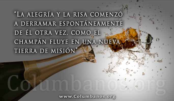 El Padre Dick se despertó con la idea de que Jesús le había dado un nuevo lugar para hacer la misión. Gracias a su enfermedad había sido nombrado por Jesús a compartir las Buenas Nuevas con otros residentes y el personal de la residencia de ancianos. Su vocación de toda la vida como sacerdote misionero de San Columbano continuaría en esta "nueva iglesia" con esta "nueva congregación." Entonces mucho para su propia sorpresa, la alegría y la risa comenzó a derramar espontáneamente de él otra vez, como el champán fluye en una nueva tierra de misión.