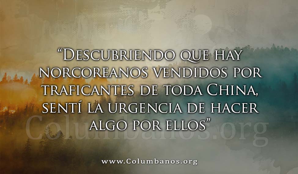 Después de misionar en Perú, cuando estudiaba en la Unión Teológica Católica en Chicago, Illinois, tuve la oportunidad de conocer a feligreses en la comunidad coreana, donde el P. John Smith, un sacerdote Columbano era pastor. Una familia, pareja de ancianos, de la parroquia fue nombrada familia para ayudar a un joven que presentó el estatus de refugiado en los Estados Unidos. El joven vivió con la pareja mayor durante más de un año. A veces iba a visitarlos, pero no podía hablar con el joven porque era muy cauteloso. Pude escuchar la historia del joven a través de la pareja de ancianos. Me enteré de los norcoreanos que escaparon de Corea del Norte y se fueron a China o Rusia a vivir durante la "Marcha de la Aflicción" que comenzó a mediados de la década de 1990. Cuando escuché que estuvo viviendo en Corea del Sur, Estados Unidos y de nuevo en Europa, me interesé más en la pastoral norcoreana. Mirando fotos de personas que murieron en el río Yalu y el río Tumen durante su huida, y descubriendo que hay norcoreanos vendidos por traficantes de toda China, sentí la urgencia de hacer algo por ellos. Oré para que Dios me diera la oportunidad de trabajar para los norcoreanos.