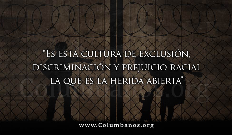 Las naciones conquistadoras europeas colonizaron a la gente del mundo y robaron sus riquezas, mientras que millones de nativos murieron y más fueron esclavizados y empobrecidos como muchos de los nativos americanos de hoy. La esclavitud se convirtió en la base de la prosperidad económica del colonialista. La población nativa americana fue acorralada en reservas. Los colonialistas importaron personas capturadas de África a América del Norte y del Sur. En un período de 300 años, 13 millones de africanos fueron enviados a través del Océano Atlántico en barcos de esclavos construidos a propósito. Los descendientes negros de estos esclavos son víctimas del racismo institucional. Es esta cultura de exclusión, discriminación y prejuicio racial la que es la herida abierta en Estados Unidos hoy en día. Si bien muchas personas blancas apoyan los derechos y la dignidad de las personas afroamericanas, muchas no lo hacen.