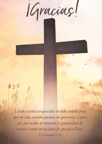 Una tarjeta para decir gracias con la cita Bíblica de 2 Corintios 9, 11.